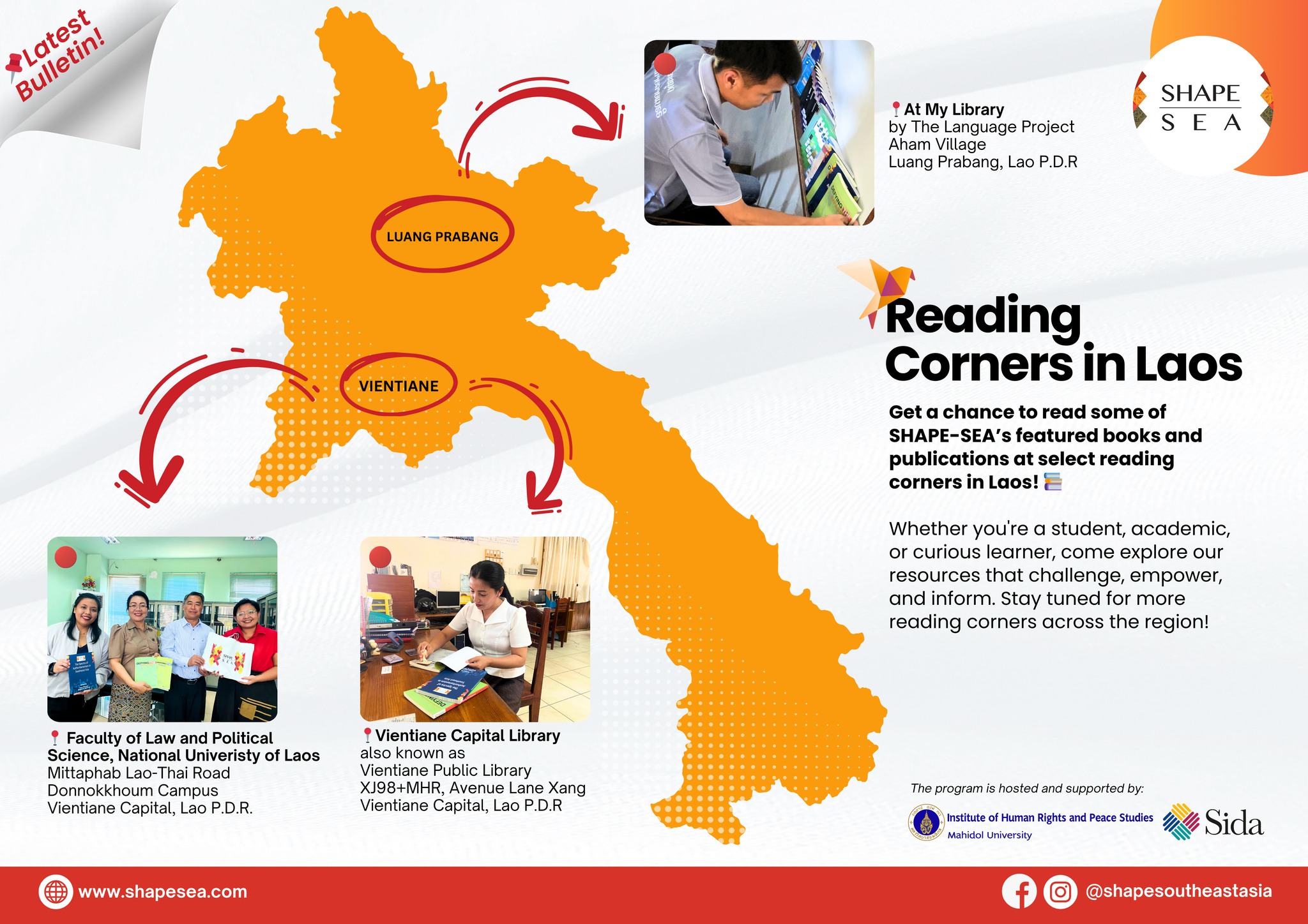📢 Good news! SHAPE-SEA’s featured books and publications are now available at select reading corners in Laos! 📚✨